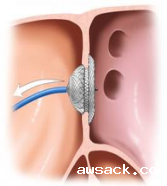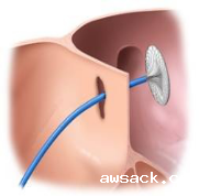 房间隔缺损封堵术:采用经股静脉穿刺的方法,将封堵伞送入心房,补贴固定在房间隔缺损处,阻断房水平左向右分流,恢复正常血液循环途径。