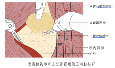 患者为44岁女性,因体检发现甲状腺肿物于我院就诊。结合患者术前检测,评估其罹患甲状腺癌可能性大,并伴有左侧侧方淋巴结转移可能,手术需清扫左侧侧方淋巴结。而侧方淋巴结清扫的难度在于清扫范围的空间小、结构繁杂,腔镜操作下难度较大,选择传统甲状腺手术相对容易。术前,患者及家属拒绝传统手术的颈部疤痕,李冠华主任医师了解到患者美容需求,跟患方充分告知沟通后,患方选择达芬奇机器人手术,因其创伤小、淋巴结清扫彻底、术后恢复快,且可达到颈部无疤痕效果,在对患者进行综合评估及充分的术前准备后,顺利实施了机器人辅助下甲状腺全切+双侧中央区淋巴结清扫+左侧II、III、IV淋巴结清扫术。