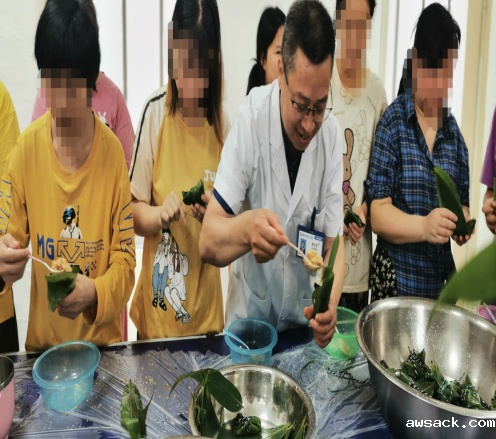 6月21日上午9:00,科主任唐仕友代表科室全体医务人员表达了对住院患者的问候与祝福,然后带领大家一起包粽子。期间大家互帮互助,气氛融洽而又温暖。