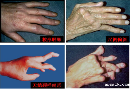 疼痛:关节肿胀疼痛、颈肩痛、腰背痛、足跟痛等。