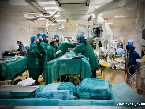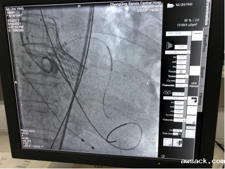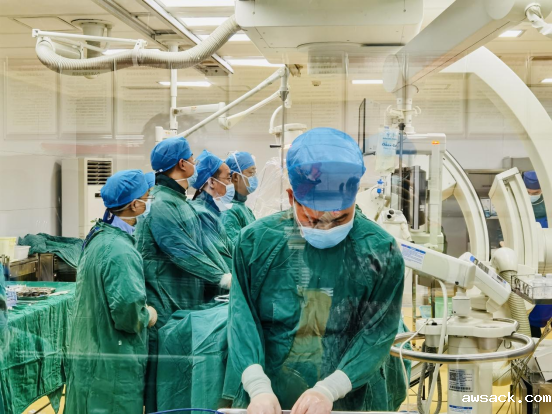 5月14日12点,患者转入介入室,在多学科专家团队共同协作下,历时7小时成功为两名主动脉瓣患者完成手术。这是我院首次采用体外循环下实施TAVR,体外循环阻断人体循环,为心脏保证停跳过程中人体的血液循环,提供无血手术野,进行心脏操作。手术方式为经股动脉送入介入导管,将人工心脏瓣膜输送至主动脉瓣区打开,从而完成人工瓣膜置入。