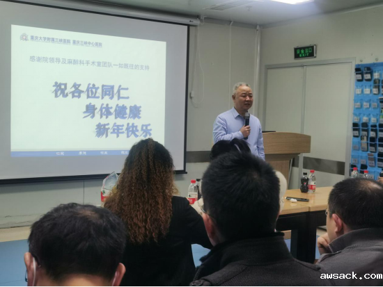 2020年,科室参与了新桥医院主办的“一起强大”线上学习活动。作为万州区麻醉质控中心挂靠单位,组织开展了全区医疗机构麻醉质控大检查,为万州区卫健委的相关医疗工作提供决策依据。组织编印了《麻醉科手术室应急手册》。吴天添荣获重庆市医学会麻醉分会“青年麻醉医师演讲比赛”二等奖,罗福全荣获重庆市医院管理协会主办的“第二届老年患者围术期器官保护国际论坛”病例比赛三等奖,并取得市级科研项目1项;陈吕富援西藏昌都市人民医院,荣获“援藏工作先进个人”称号。麻醉科主任余云明还分析了工作中的不足,如手术室设施设备,科研实力、人才梯队建设等方面的问题。