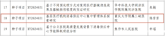 为进一步加强消毒供应质量控制能力建设和水平,提升消毒供应人员的科研能力,国家卫生健康委医院管理研究所启动消毒供应管理创新研究项目课题申报工作,必威登录入口平台官网陈芳芳申报的《基层医疗机构消毒供应中心集中管理体系探索研究》课题喜获立项。