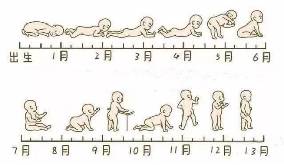 运动发育可分为大运动和精细运动两大类。大运动是身体对大动作的控制,如抬头、坐、爬、站、走、跑、跳等;精细运动是相对于大运动而言较小的运动,如抓握物品、涂画等。妊娠后期出现的胎动为运动的最初形式。新生儿因大脑皮质发育尚不成熟,传导神经纤维尚未完成髓鞘化,故运动多属无意识和不协调的。此后,尤其第一年内随着大脑的迅速发育,婴儿运动功能日臻完善。运动发育遵循自上而下、由近至远、从不协调到协调、先正向动作后反向动作的规律。