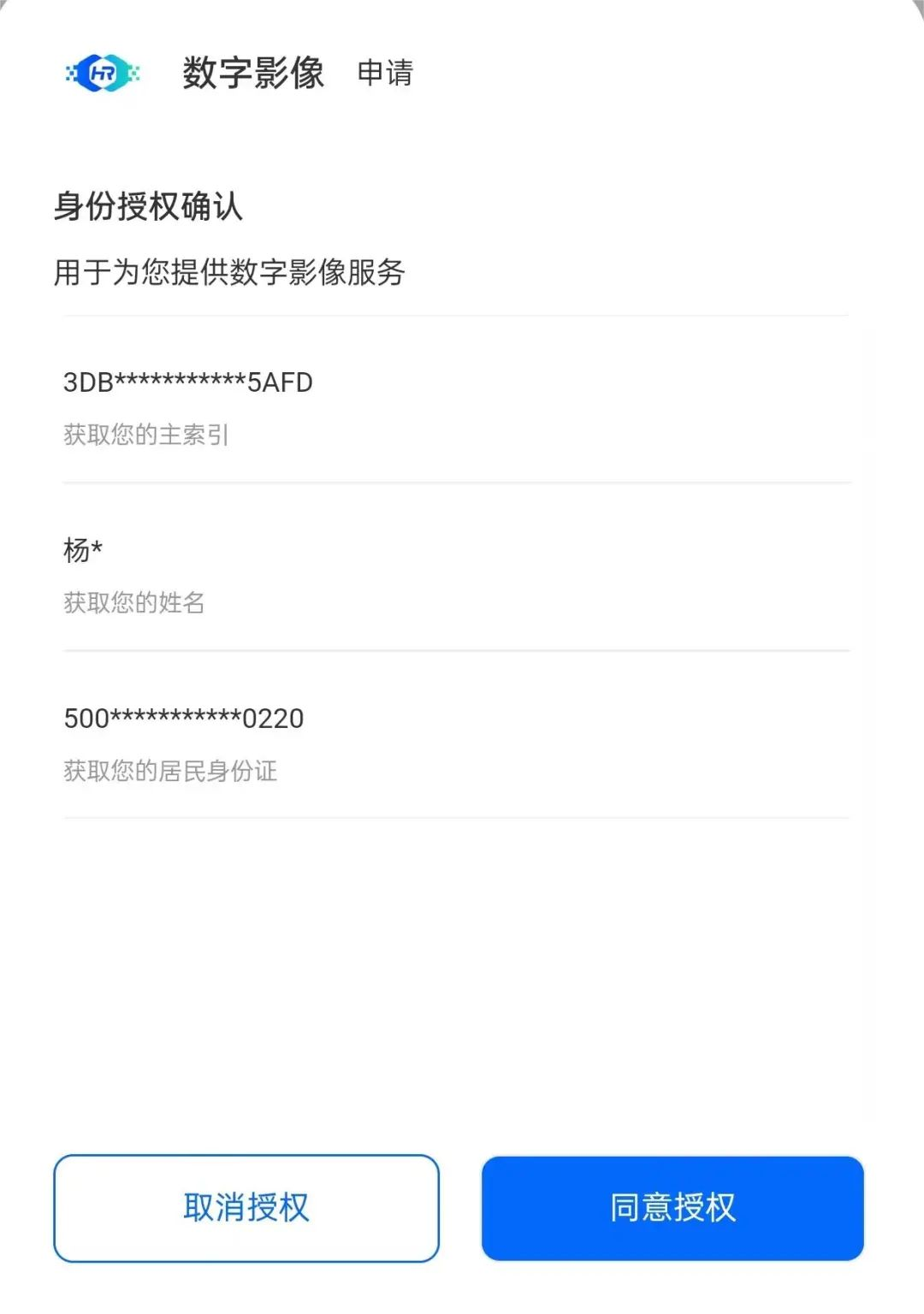 二、添加就诊人信息,选择数字影像“同意授权”