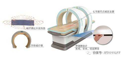 它对人体无任何毒副作用,利用磁场止痛,缓解患者腰背疼痛等症状;同时利用磁场的磁-电效应(非热效应)产生的感生电势和感生电流,改善骨的代 谢和帮助骨重建,通过抑制破骨细胞、促进成骨细胞的活性来阻止骨量丢失、提高骨密度,可迅速减轻因骨质疏松引起的腰、背、腿疼痛并强化对脊椎、腰椎、髋骨和股骨等易骨折部位的治疗。